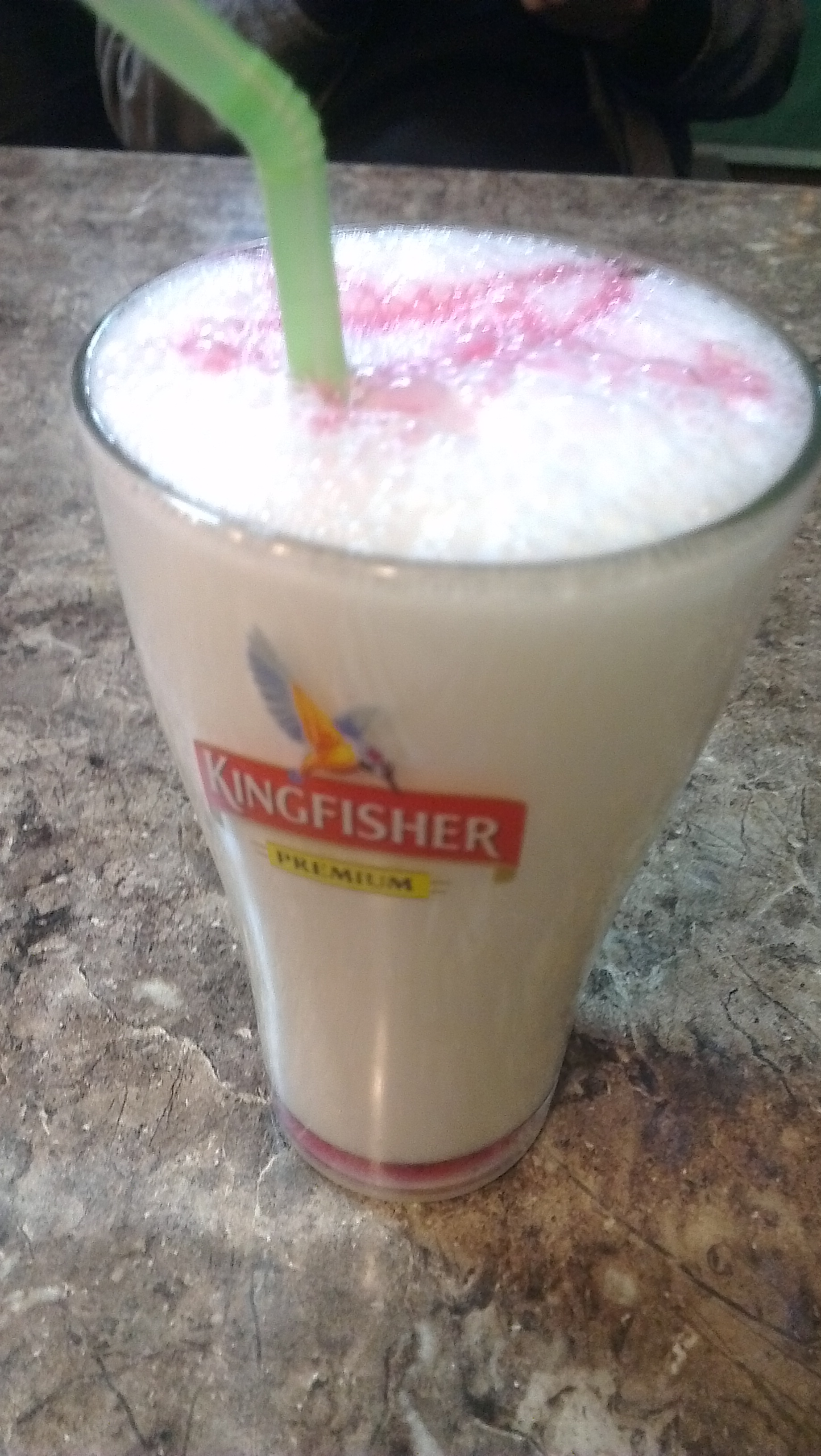 因為店員說要喝冰的只有優格和果汁的選項,我就選擇優格,不知道是否等於拉西(lassi)?? 不過客倌們是否注意到上頭有個粉紅色的星星,優格也是可以拉花的喲~