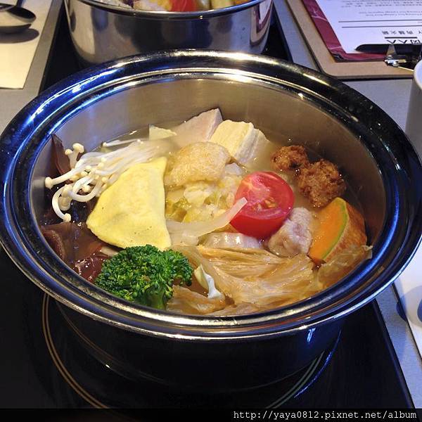 酸白菜是使用台南老字號延齡堂吳老爺的酸白菜、高麗菜、南瓜、金針菇、木耳、芋頭、凍豆腐