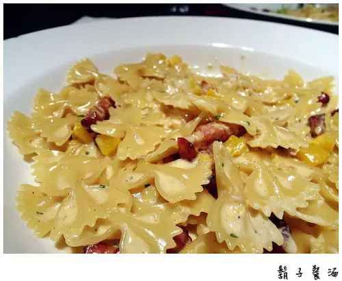 香蒜白酒蛤蜊義大利麵~這道原本是打算點給阿嬤吃所以請店家做了不辣,店員也有事先詢問麵需不需煮軟一點(麵條部份店家堅持al dente(彈牙,有嚼勁)的口感,所以採義大利麵心不煮熟的方式烹調,但若喜歡軟一點口感的也可以請店家煮軟一點),結果分享吃完前述餐點之後這道阿嬤只有吃了一點點就吃不下打包外帶回家,我有吃了一口味道也不錯,但麵條部份我還是比較喜歡店家原始較有嚼勁口感的煮法.