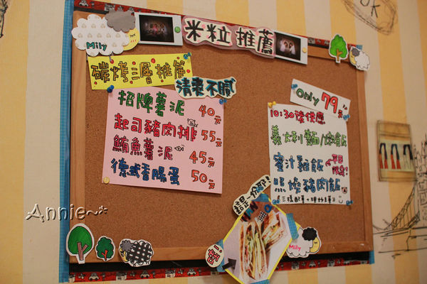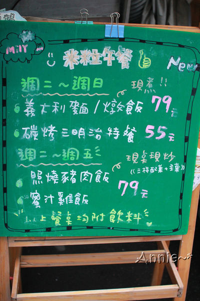 進到店裡,手繪的菜單招牌非常符合我印象中的米粒老闆娘風格,