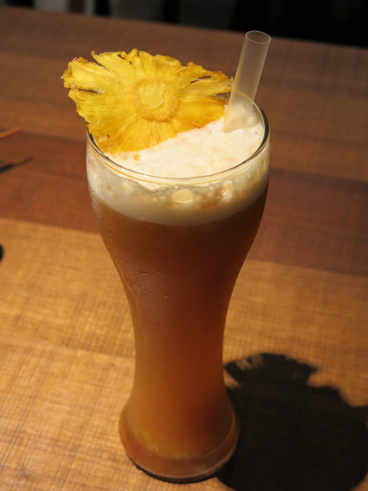 叁和院經典水果茶有著漂亮的鳳梨乾裝飾,看起來賞心悅目,喝起來類似熱帶水果口味的清爽口感茶飲。