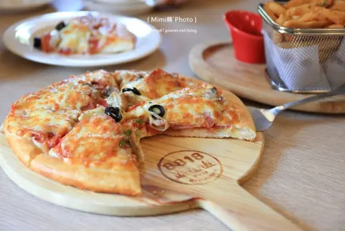 披薩的餅皮是比較厚的是吃了會很有飽足感的作法!所以喜歡厚披薩的人可一定喜歡。