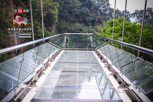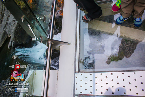走在上面時,底下奔馳的是小烏來瀑布,隔著透明的膠合玻璃,