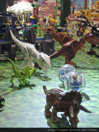 跟得上流行的侏羅紀世界,有水晶遊園車、混種帝王暴龍、跑得快迅猛龍訓練營。
