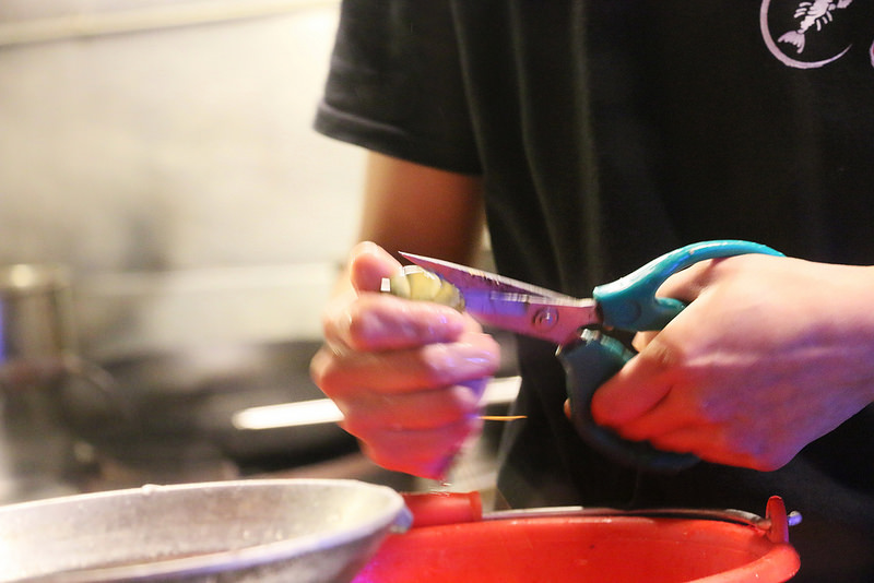 點完餐後,店員開始抓蝦開始製作餐點