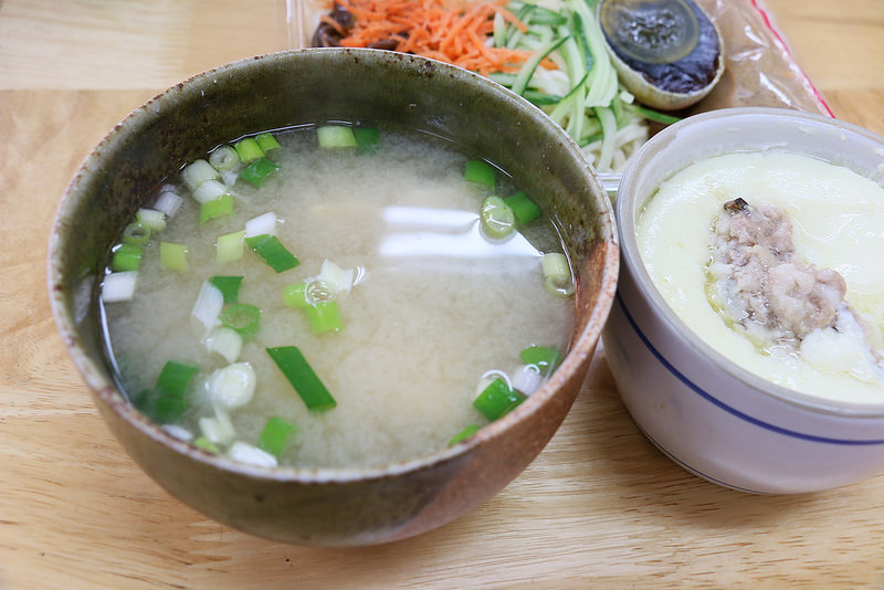 一份紅燒肉、五碗茶碗蒸、三碗味噌湯