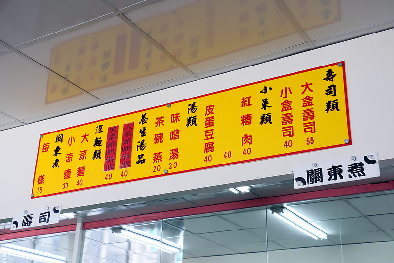壽司類、涼麵類、小菜類、關東煮與湯品
