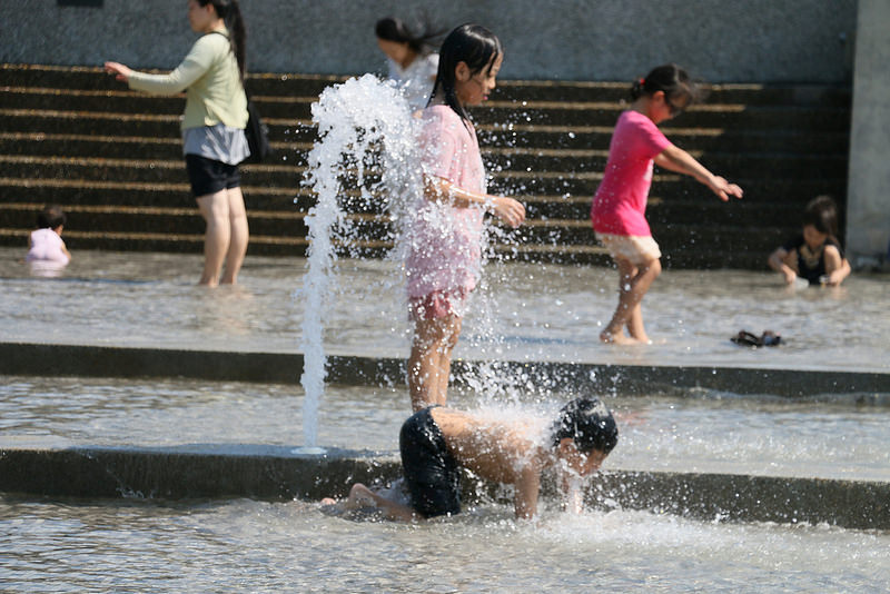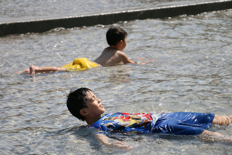 玩水比較不會冷喔!