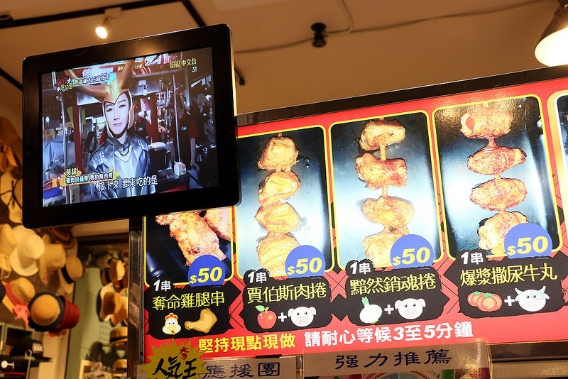 奪命雞腿串、賈伯斯肉捲、黯然銷魂捲、爆漿撒尿牛丸