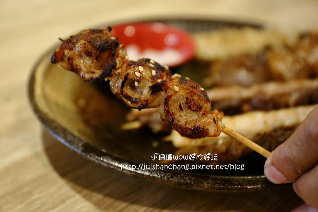 以些許海鹽及七味粉調味,簡單的香料,就是最能吃得到原始的肉香,肉質吃起來都很軟嫩,鹹度也嘟嘟好,肉串的鮮甜和海鹽的鹹味相得益彰~