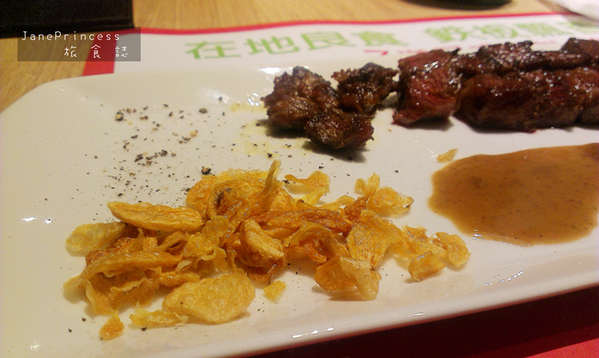 Jane好久沒吃牛排了又看到有香煎蒜片就忍不住點了