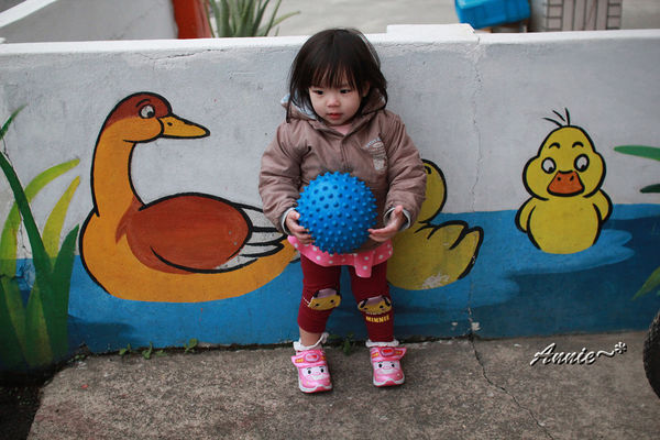 一看到黃色的小鴨,圈圈就火速的跑了過去說:媽媽,黃色小鴨耶!!
