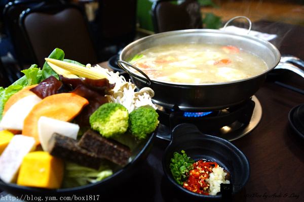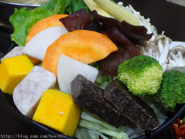 裡面有芋頭,米血,南瓜,黑木耳,菇類,紅白蘿蔔,花椰菜,玉米筍,和三種葉菜類,