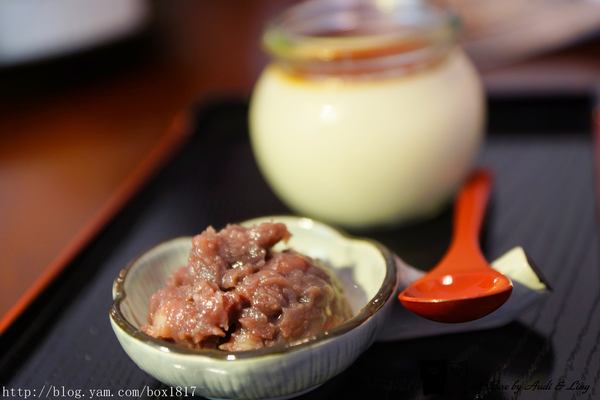 布丁吃到中層時再搭配附的紅豆一起品嚐,