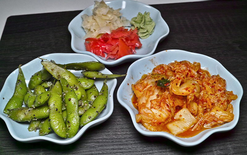 毛豆, 泡菜, 哇沙米和紅薑等, 非常豐富