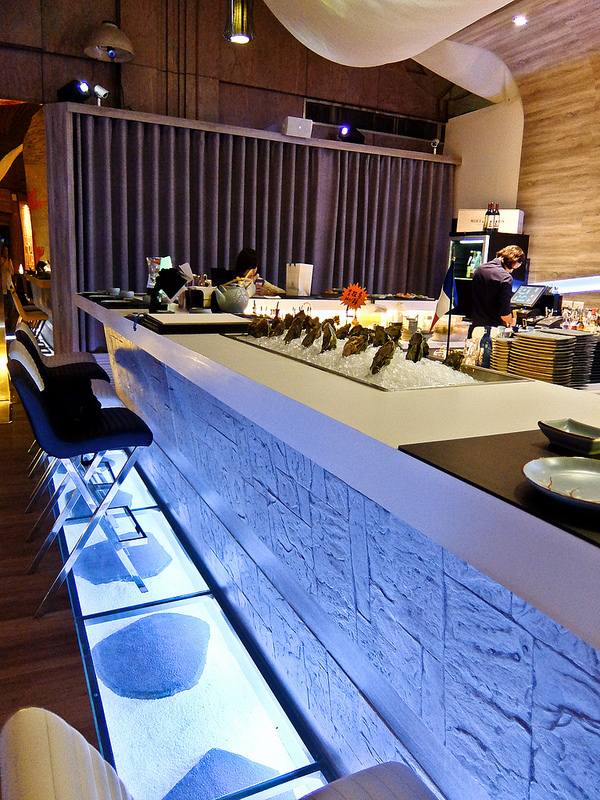 兩個人來或一個人吃都可以坐吧台, 吧臺旁有目前店家大推的吉拉多生蠔, 帶女生來約會或是女孩們聚餐都超適合的