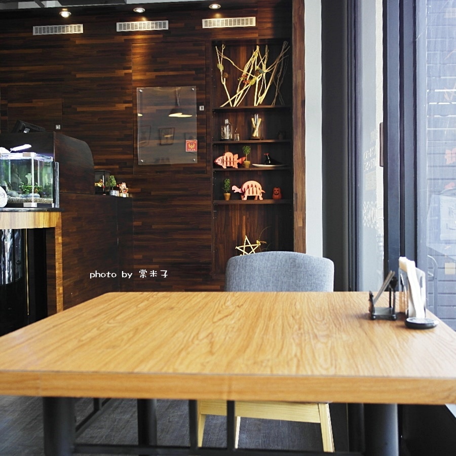 木質桌椅感覺起來就很舒服,我喜歡這個窗邊的2人座位區,