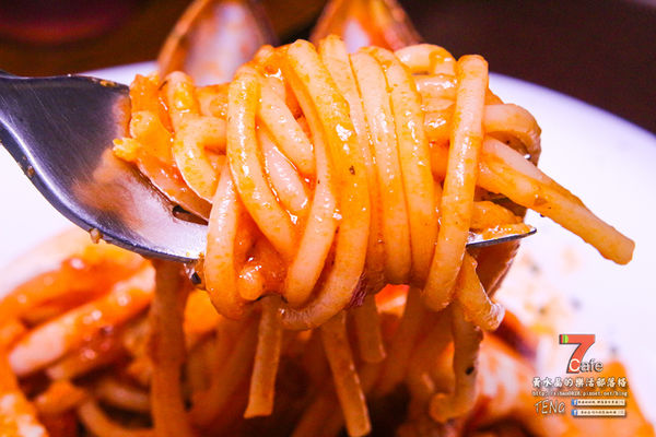 麵條也吸附了紅醬,看起來超可口的啊!