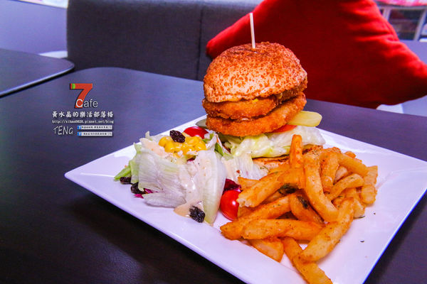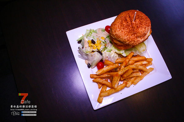 漢堡類餐點都會附上沙拉及薯條。