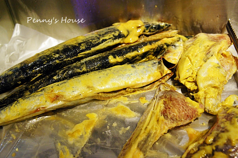 有一些特別處理過的例如下面的秋刀魚,利用香料先進行醃製,等點單上來才進行烘烤。