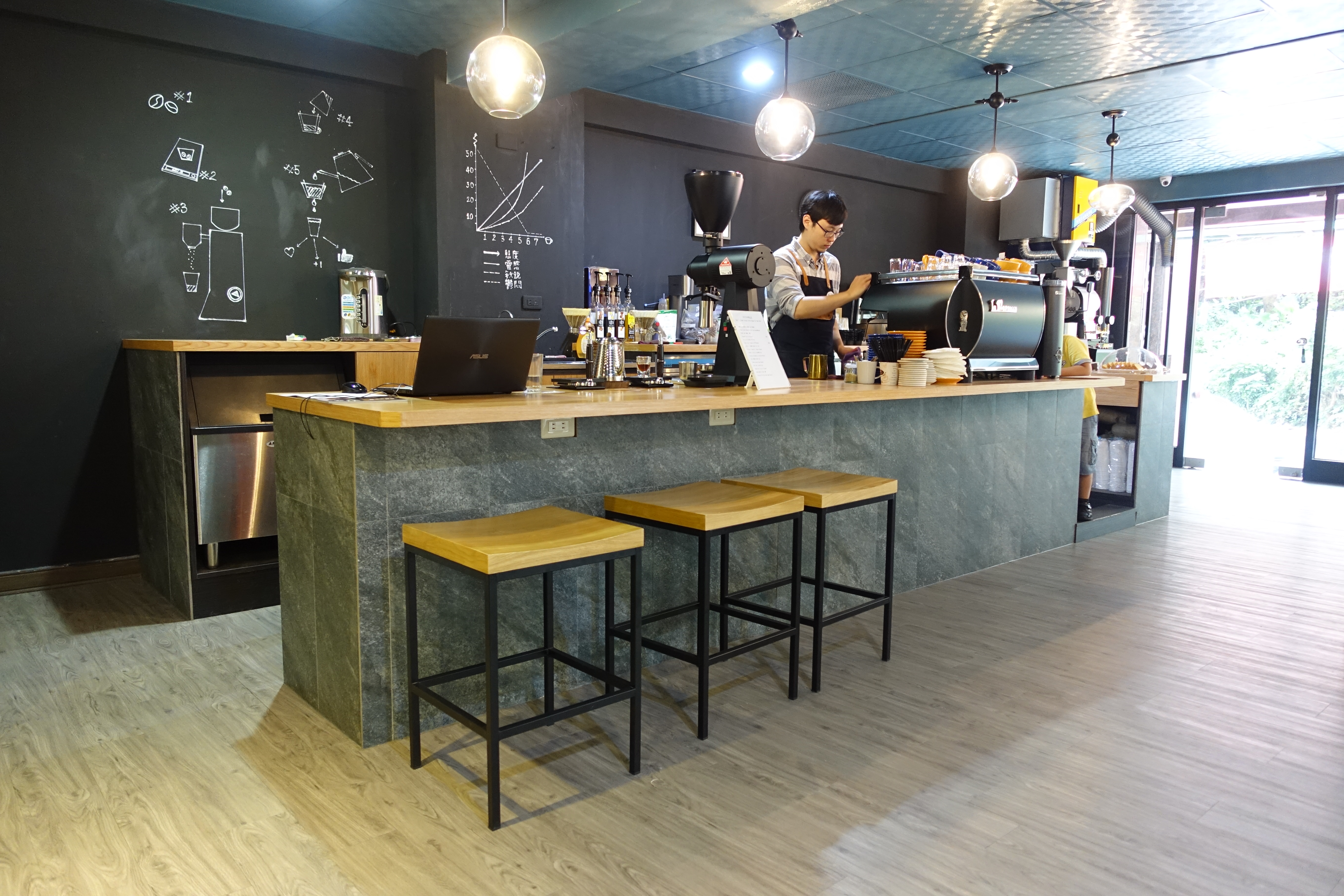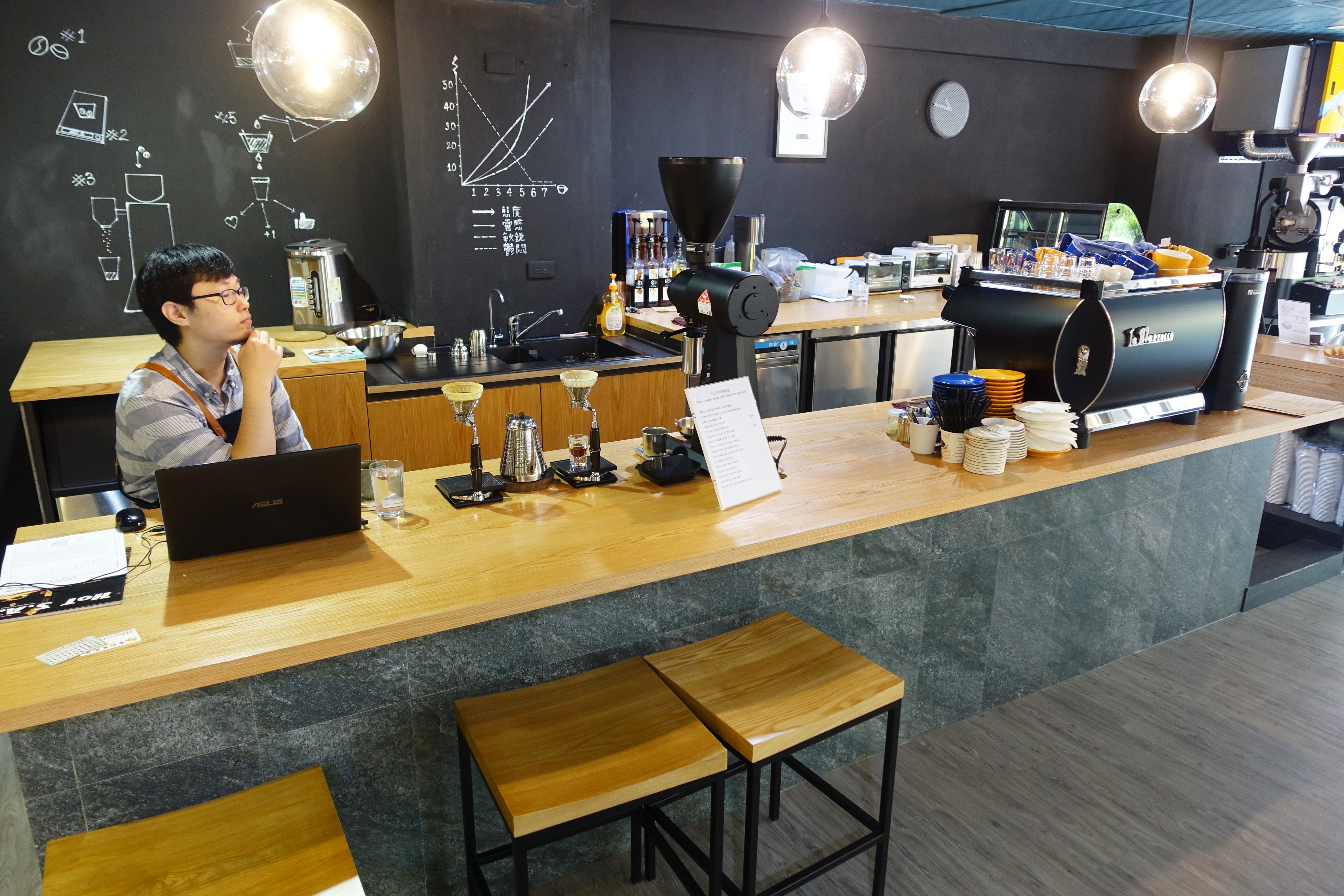 面向工作檯的最左邊,有一小區像吧檯的設置,老闆說這是他故意留出來的空間,客人可以在這邊與老闆喝咖啡聊是非,切磋與交流咖啡心得。