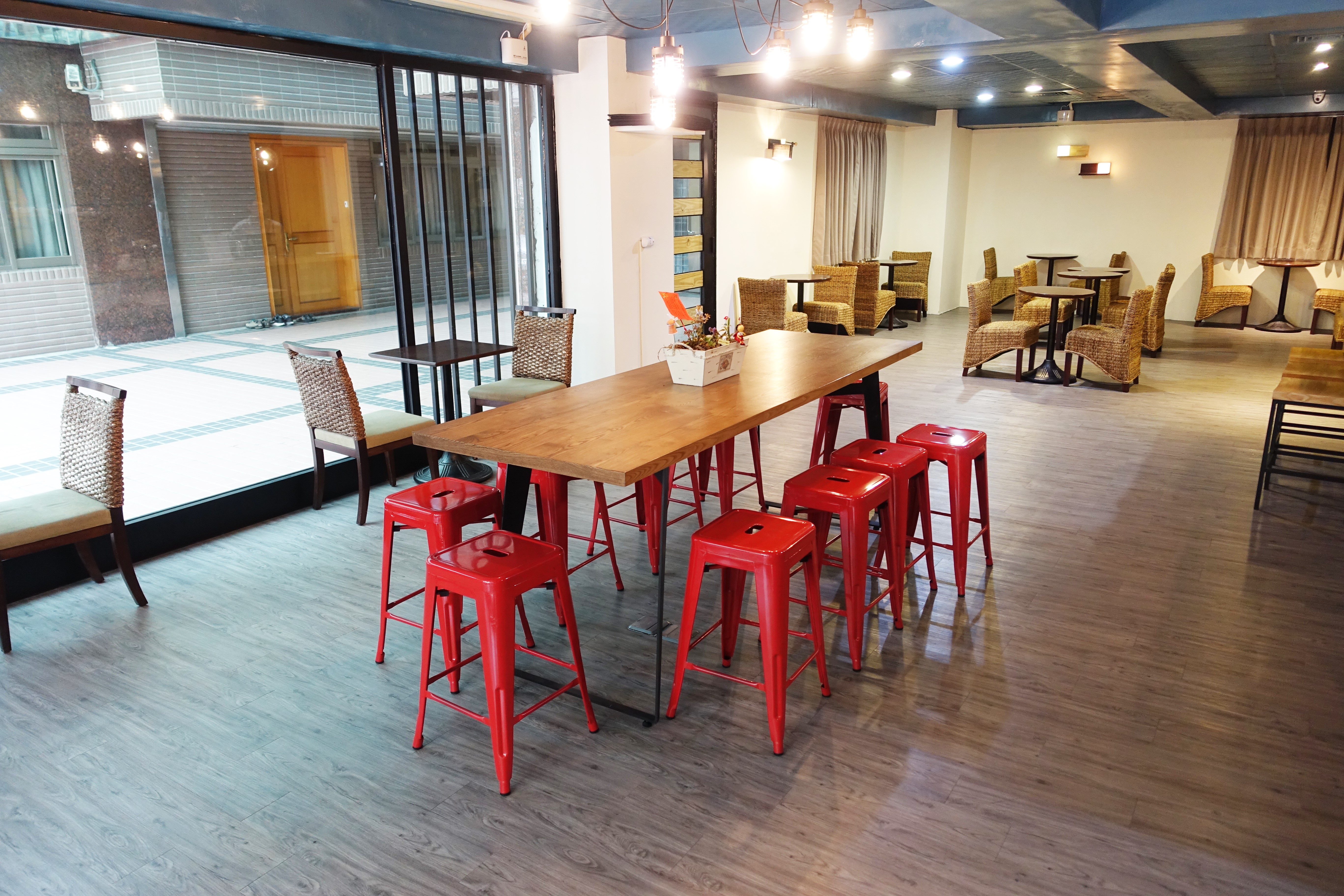門口有一大片落地窗,白天陽光灑落店裡,既明亮又溫暖。