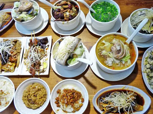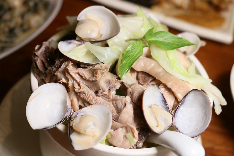 養身湯品:蛤蠣燉雞、何首烏燉雞、虱目魚肚蛤蠣、韭菜鮮蚵湯