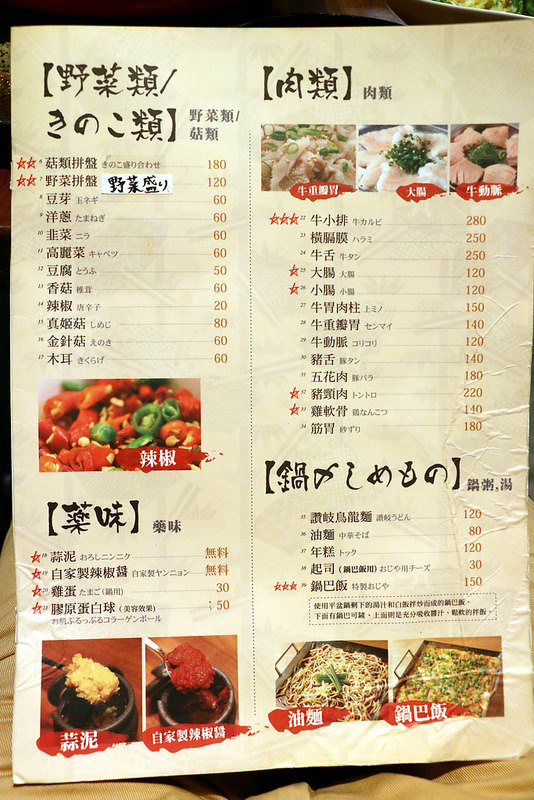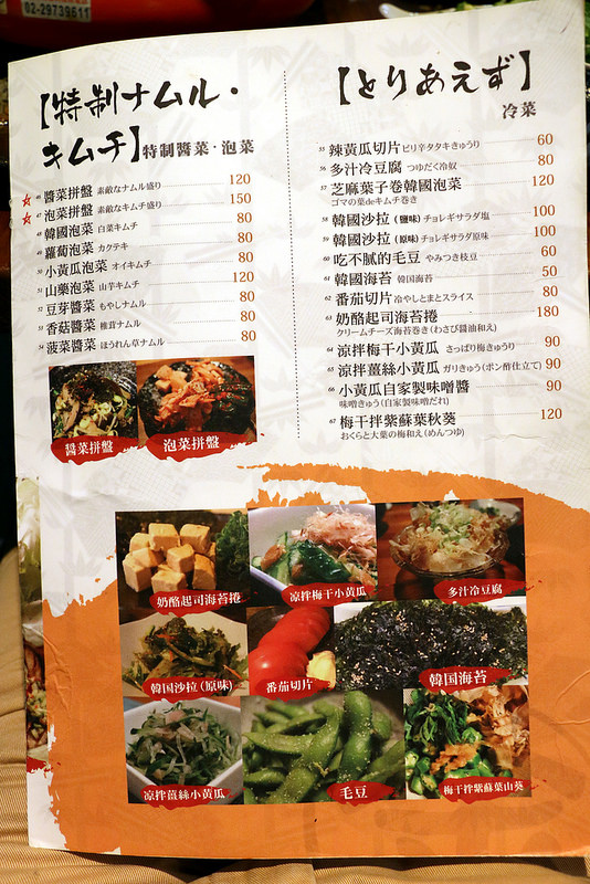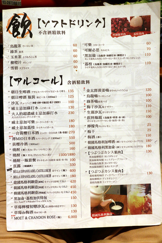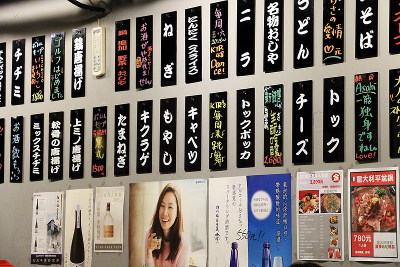 牆壁上貼了五彩繽紛的日文菜單