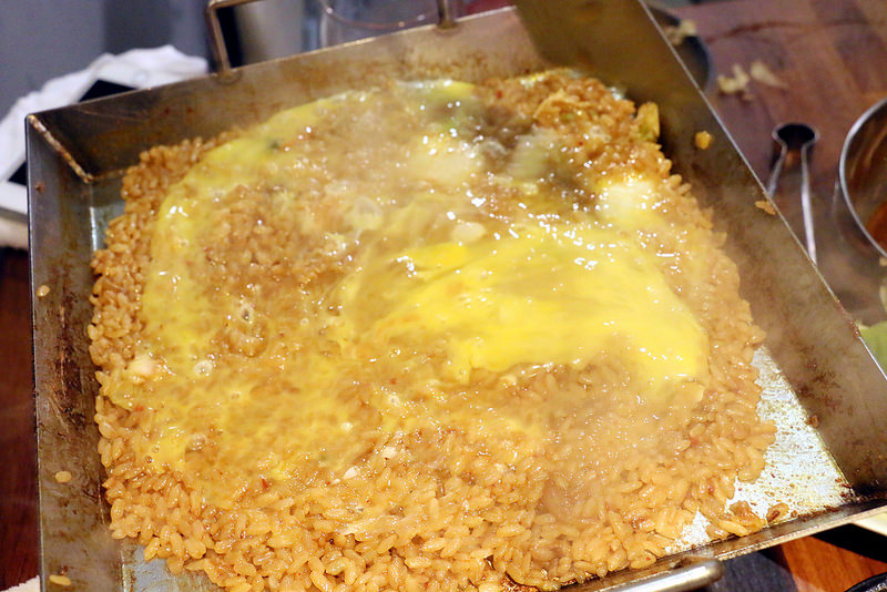 米飯吸飽平盆鍋的湯汁