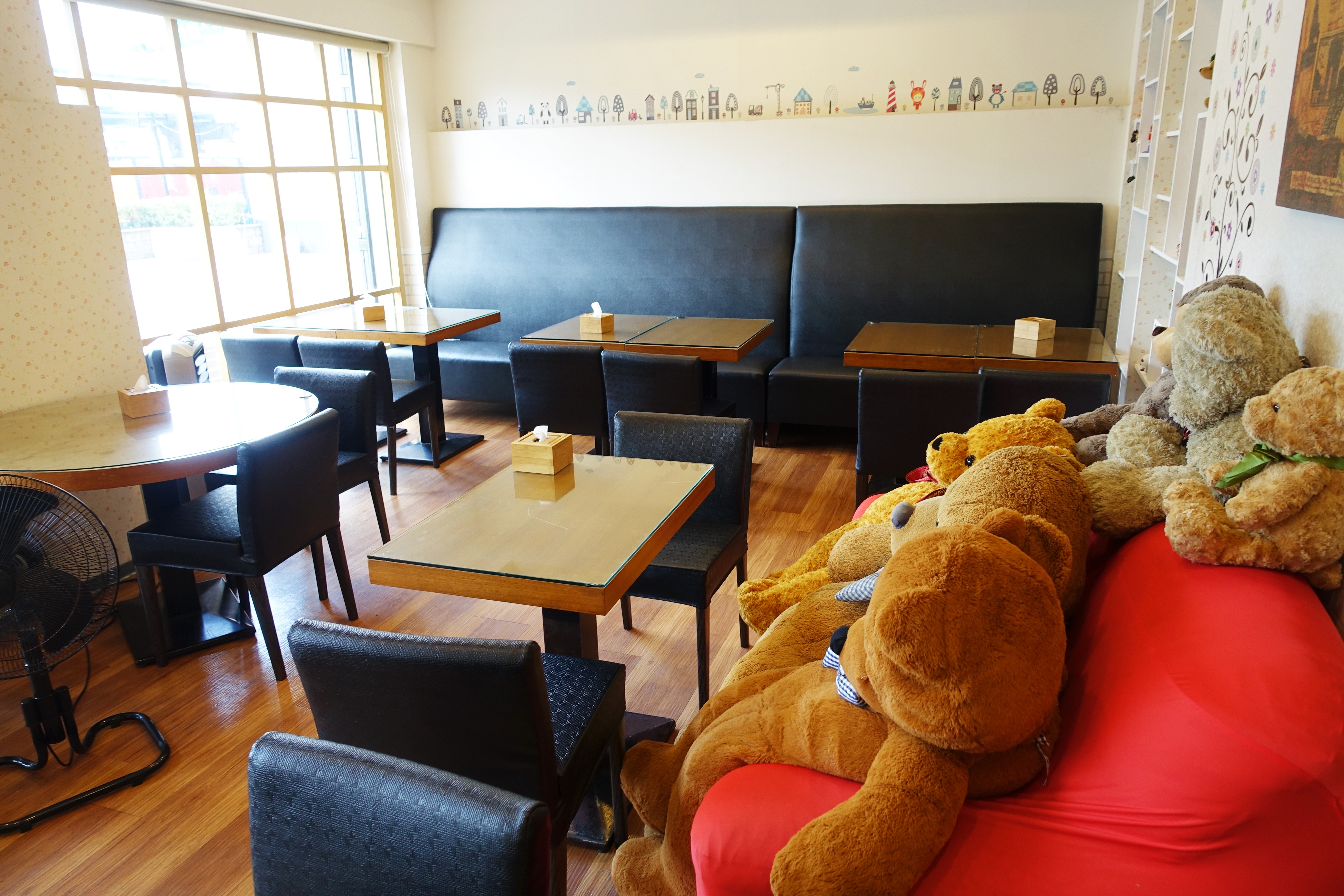 米蕾咖啡進門後左手邊的環境相當寬敞,還可以看到一群熊在沙發上發呆XD。