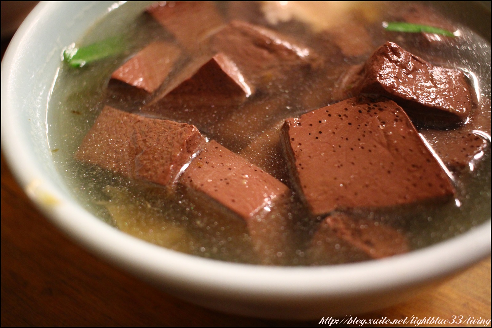 而豬血吃起來的軟硬度剛好,接近百頁豆腐口感,不會有澀澀的刮舌感