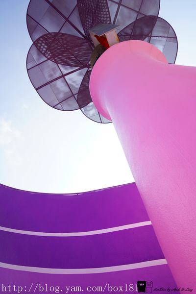 臺中市政府經濟發展局結合新社代表色建置紫風車意象設施,