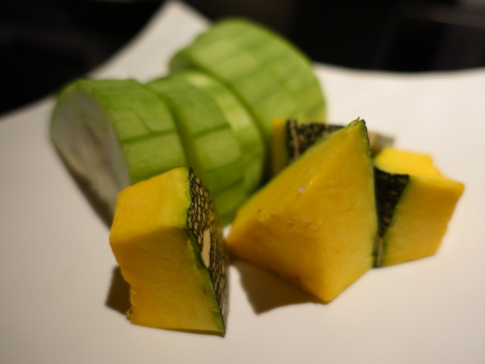 在蔬菜的部分,我嘗試了高麗菜、絲瓜與南瓜,分量不多但有著優異的新鮮質感,無論放在白湯或麻辣湯煮都很清甜。