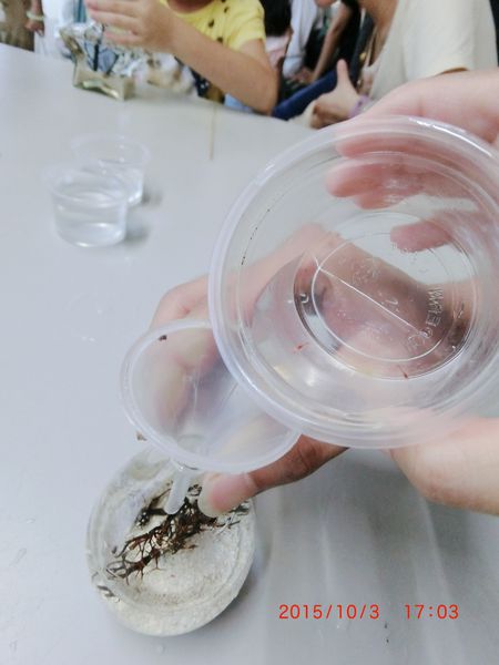 團體區做的是淡水生態瓶,小蝦壽命約1-2個星期