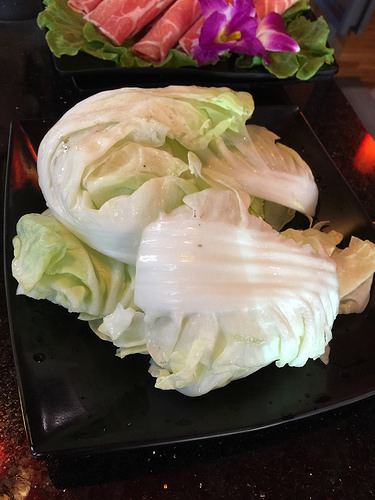 因此我每次來都會加點一盤100元的綜合菇類、一盤各50元的白菜、高麗菜、南瓜等蔬菜跟一盤250的豬肉......