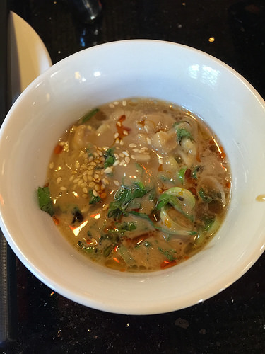 我認為最理想的調醬素材一定要有芝麻醬、生辣椒、蒜末、香菜、黑醋、醬油跟麻油等素材!