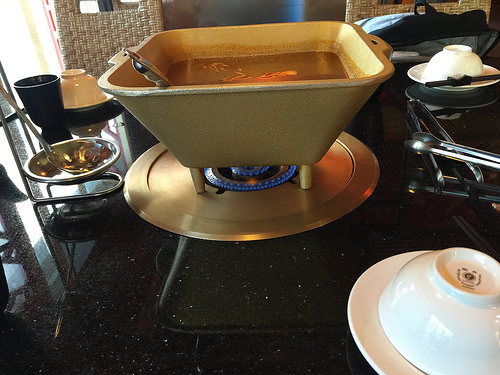 剛上桌的麻辣鍋,他們的鍋器很特別~