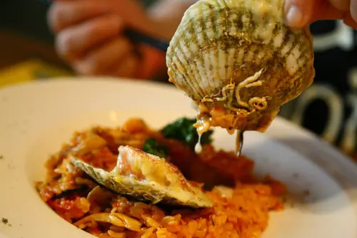 朋友點的 青醬海鮮麵 $160(加$30多焗烤)