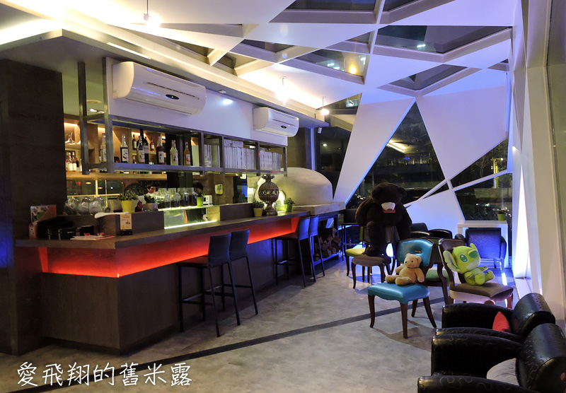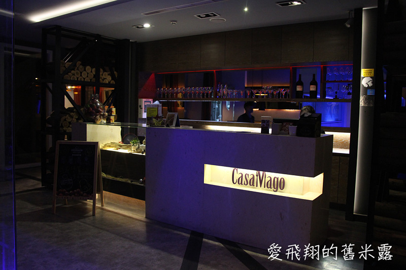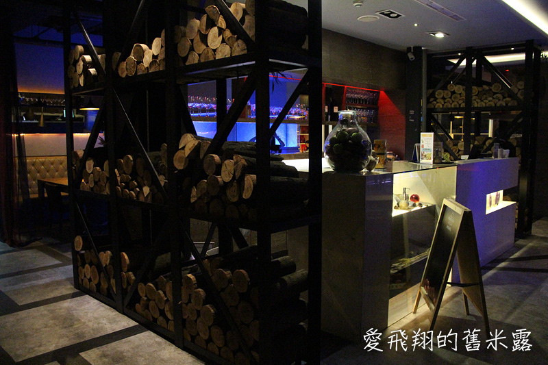 餐廳內有自己獨有的酒窖,藍色的LED燈放置不同年代的紅酒與不同品類的酒,充滿著lounge的氛圍。