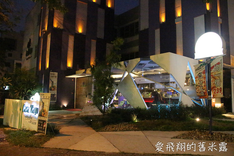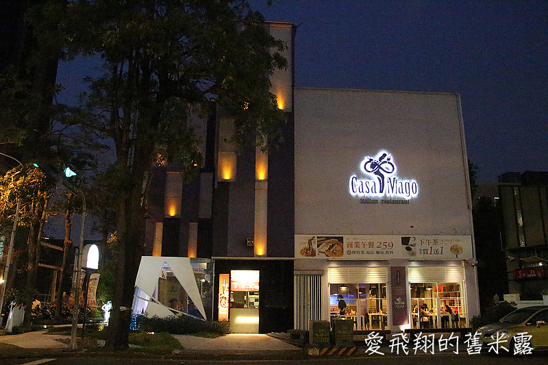 位於大墩11街上IKEA旁夜晚的可薩瑪果義式餐廳~Casa Mago(命名源自義大利的塔羅紙牌-第1張「魔術師il Mago」),五彩燈光幻化猶如魔術師的家,,
