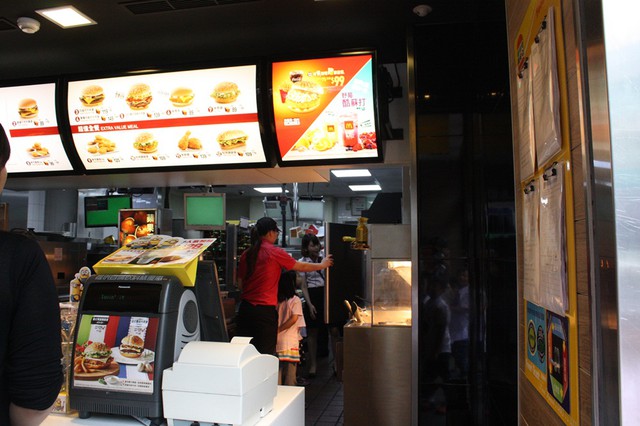 然後由麥當勞大姐姐帶他去製作兒童餐附贈的蛋捲冰淇淋,接下來換姐姐來點餐。