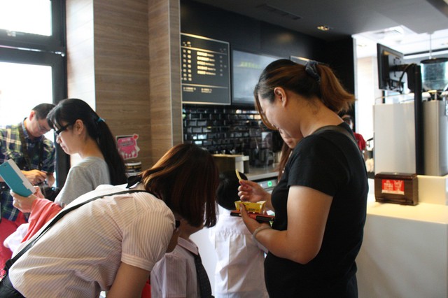 小朋友排隊到樓下一F點餐櫃檯前,準備輪流進去參觀麥當勞哥哥姊姐工作的地方
