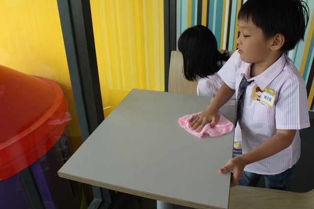 這次換我家弟弟先上場,因為之前有來體驗小小服務員活動,所以一點也沒有怯場的
