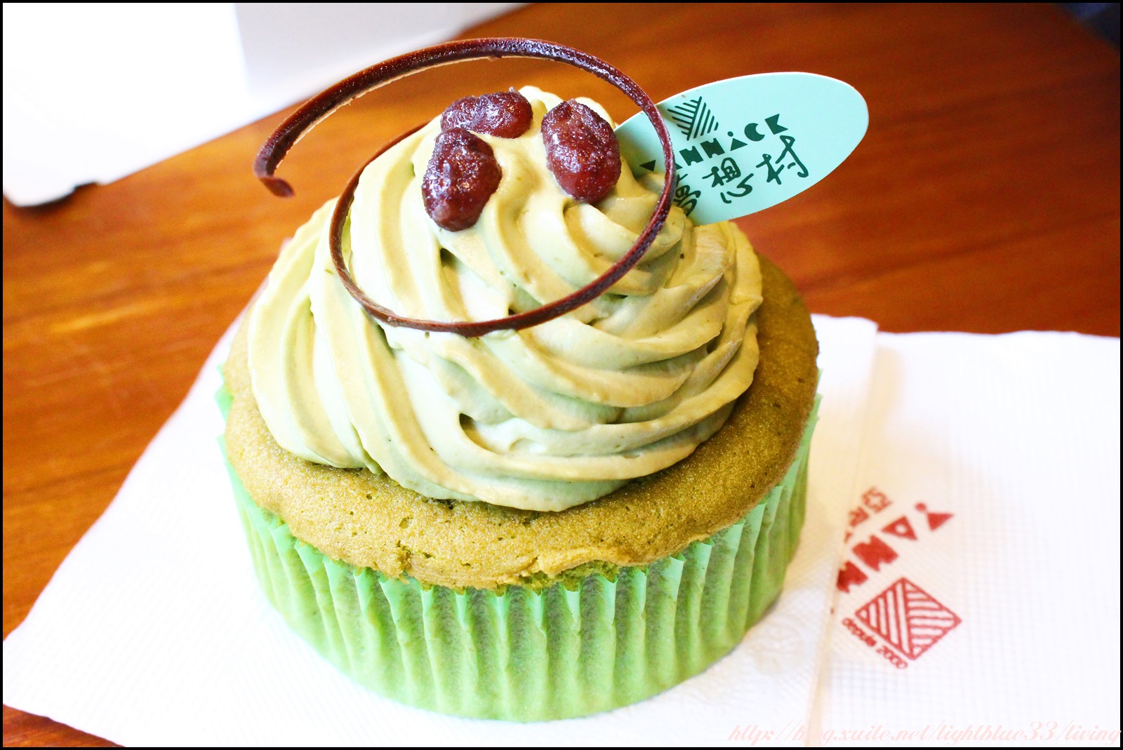 買了一個抹茶紅豆口味,切開可以看到在奶油裡頭還有包紅豆粒呢