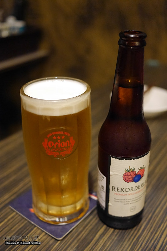 左邊的是沖繩ORION生啤酒,$100;右邊的是野莓水果酒,$100。