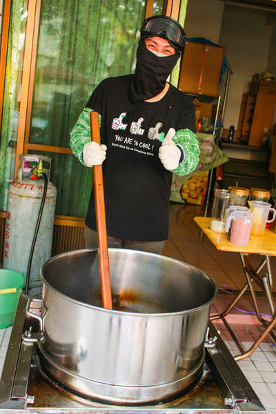 這種大熱天穿成這樣,做手工的爆米花一定很辛苦吧!