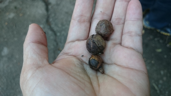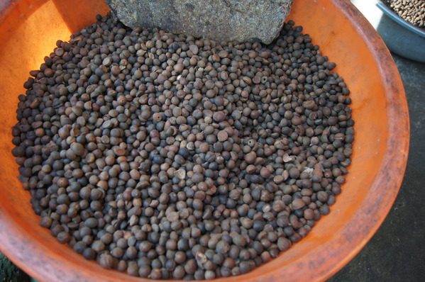 認識苦茶油,大顆種籽的苦茶籽是改良種。南庄的苦茶籽,也就是前面撿到的那些是原生種。