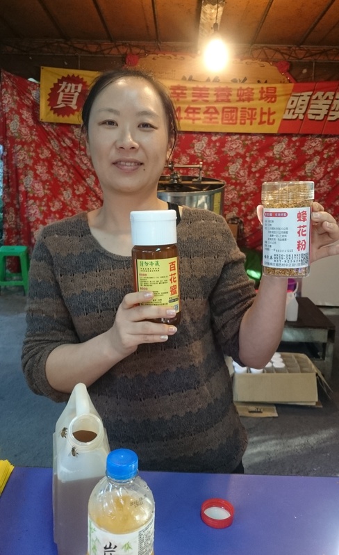 老闆娘拿起蜂蜜板讓我們拍拍蜂蜜!!