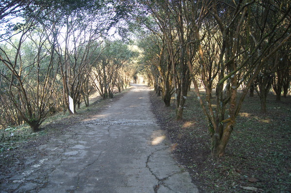 道路兩旁種的是苦茶樹。其種子成熟後經榨油,俗稱苦茶油。