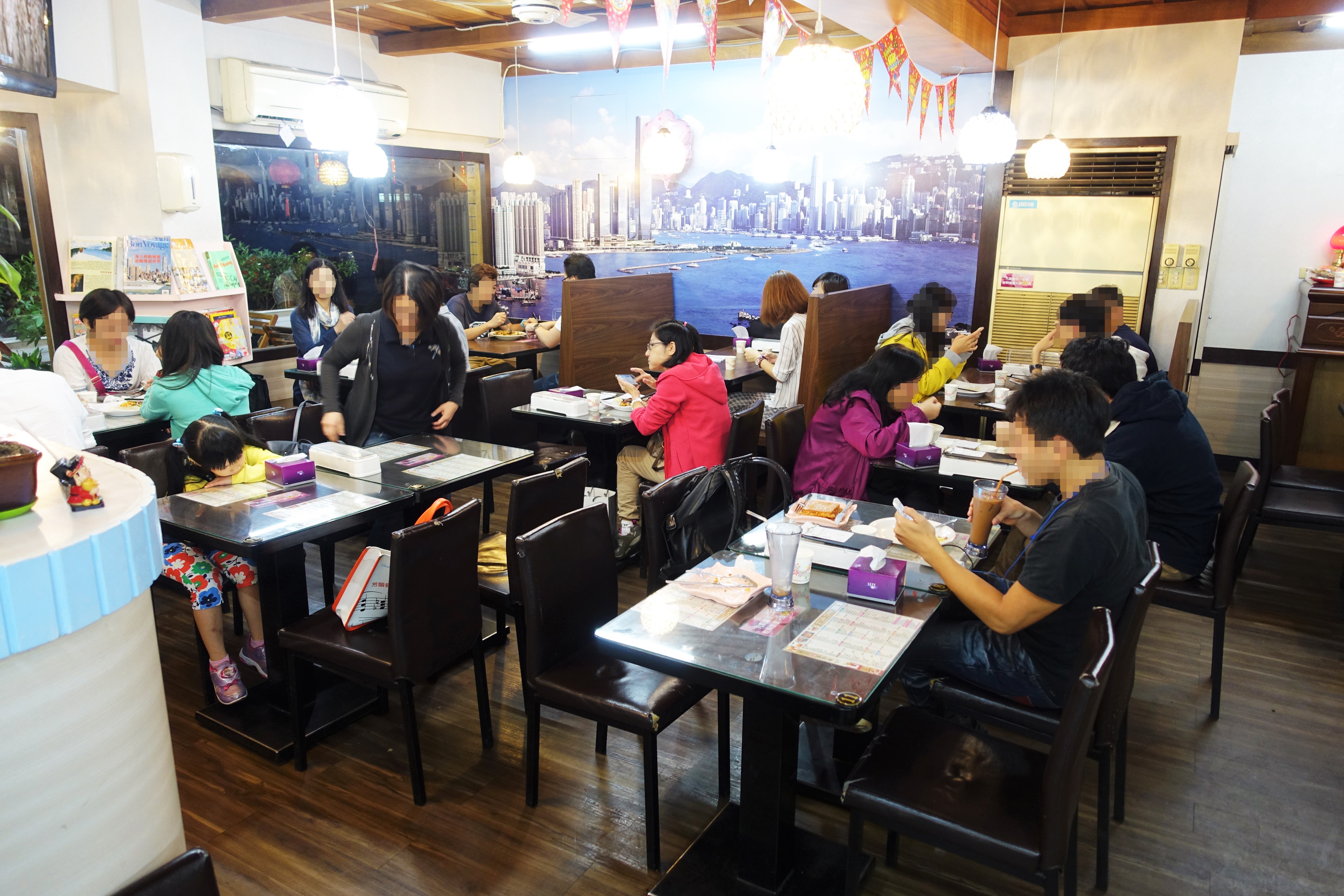 88香港茶餐廳的內部裝潢非常簡單,粉刷的白牆、原木色的桌椅與炙白的燈光,是一種簡約的溫馨風格。
